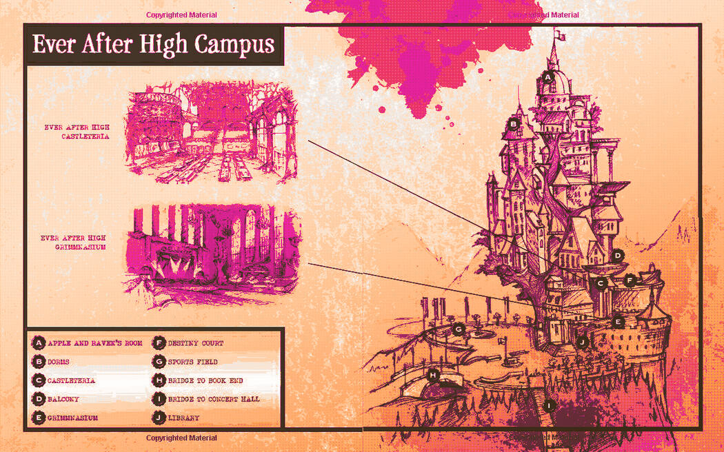 ¡Bienvenidos, queridos lectores, a Ever After High, el majestuoso hogar de los jóvenes herederos de los cuentos de hadas! Permítannos guiarles a través de los pasillos de esta encantadora institución, donde la magia y la tradición se entrelazan en cada rincón.La escuela se erige como un castillo de ensueño, con torres que se elevan hacia el cielo y vitrales que cuentan historias de antaño. Los colores vibrantes de los estandartes ondean en el viento, reflejando el legado de sus estudiantes. Al cruzar la puerta principal, se encuentra un amplio vestíbulo adornado con retratos de personajes legendarios y un gran reloj que marca el tiempo de las historias.